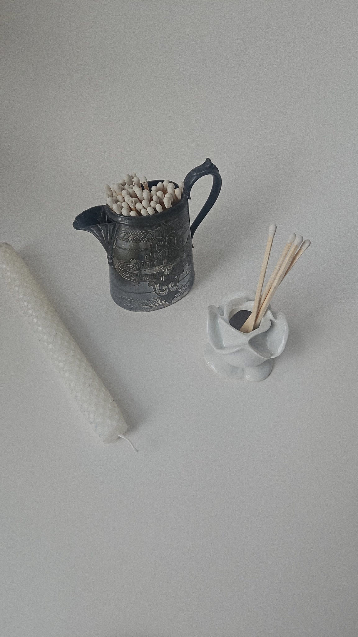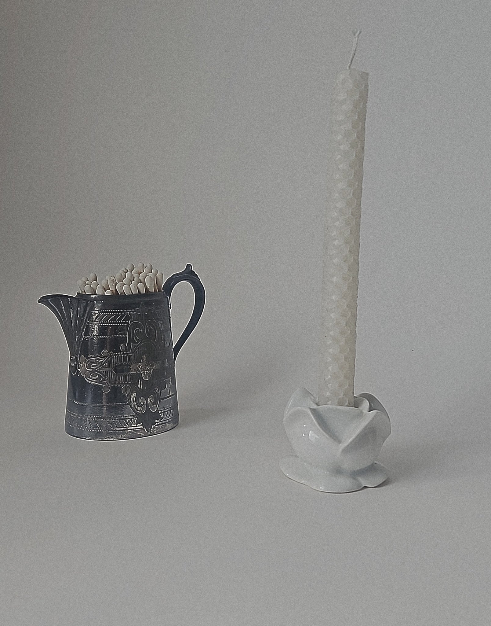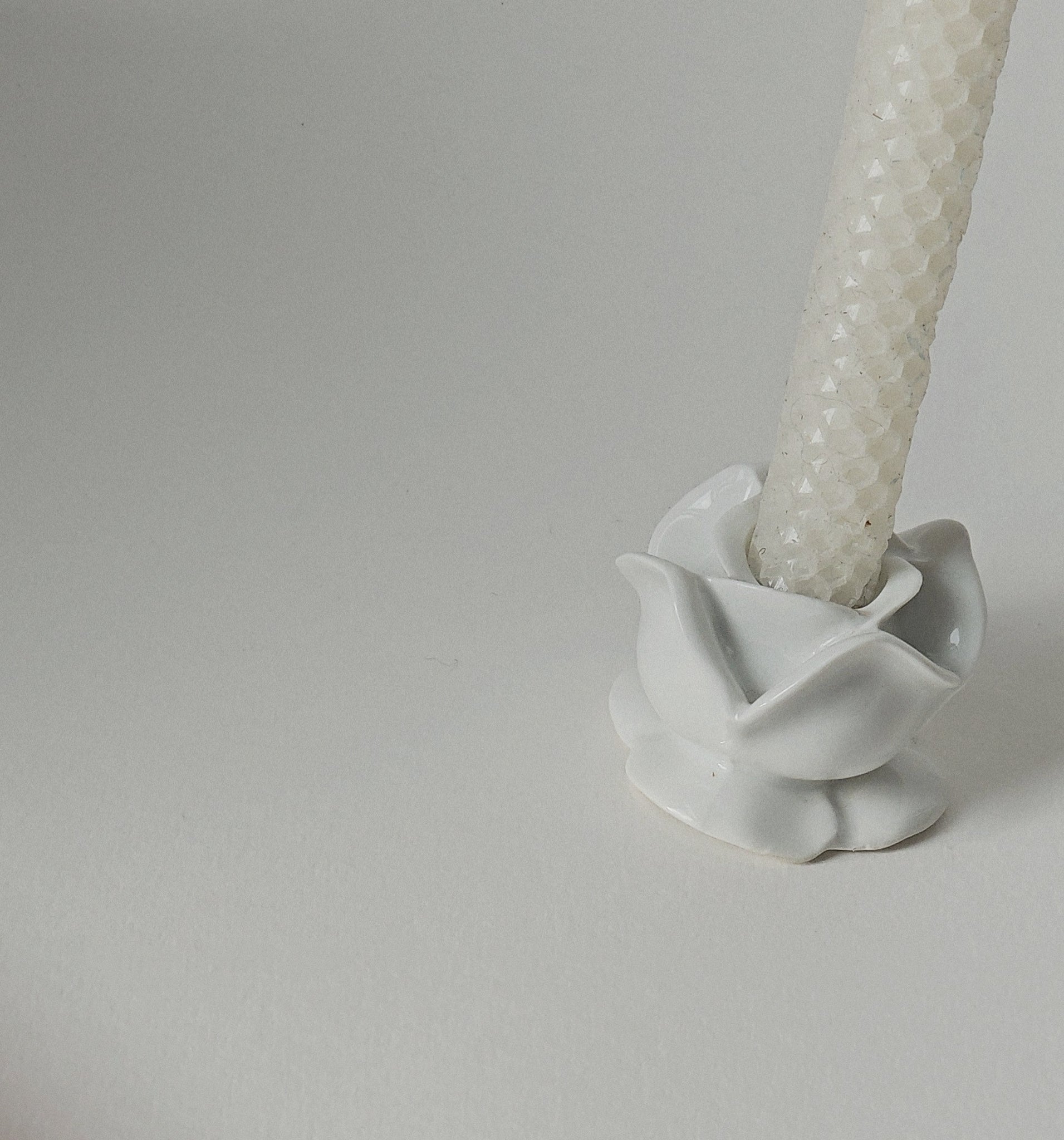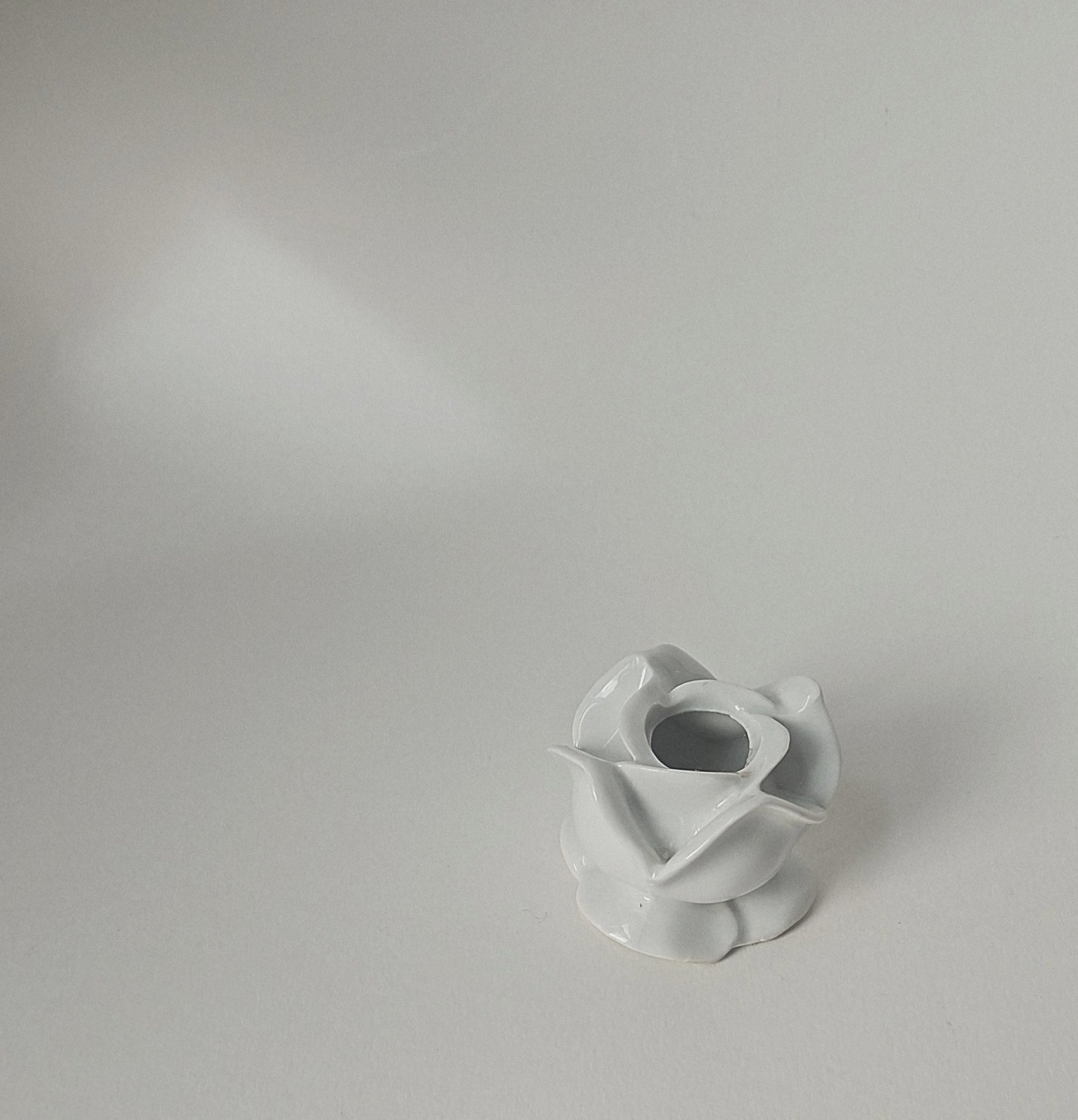 Vintage French white porcelain rose candle holder. Suitable for a standard dinner candle. Marked Made In France to base.