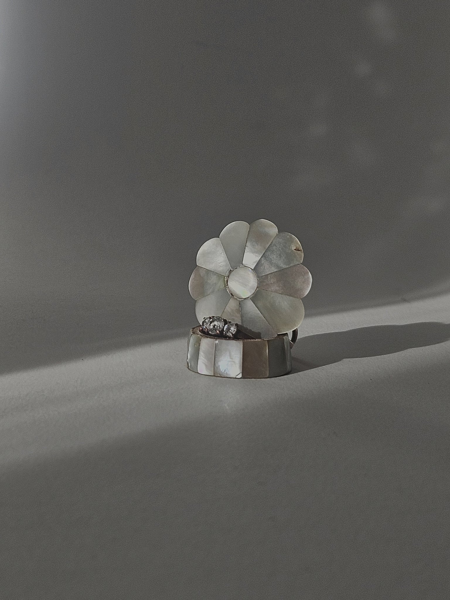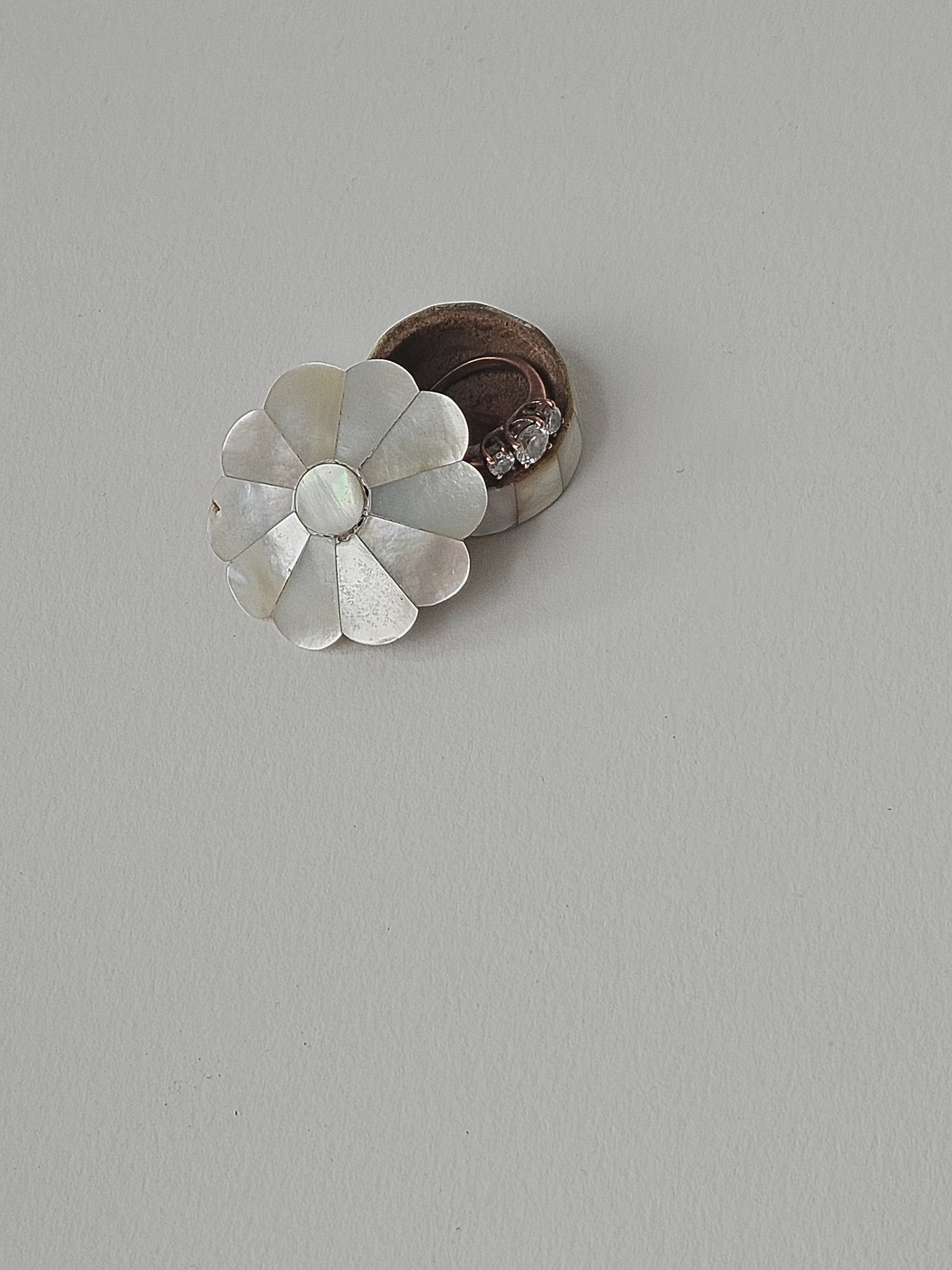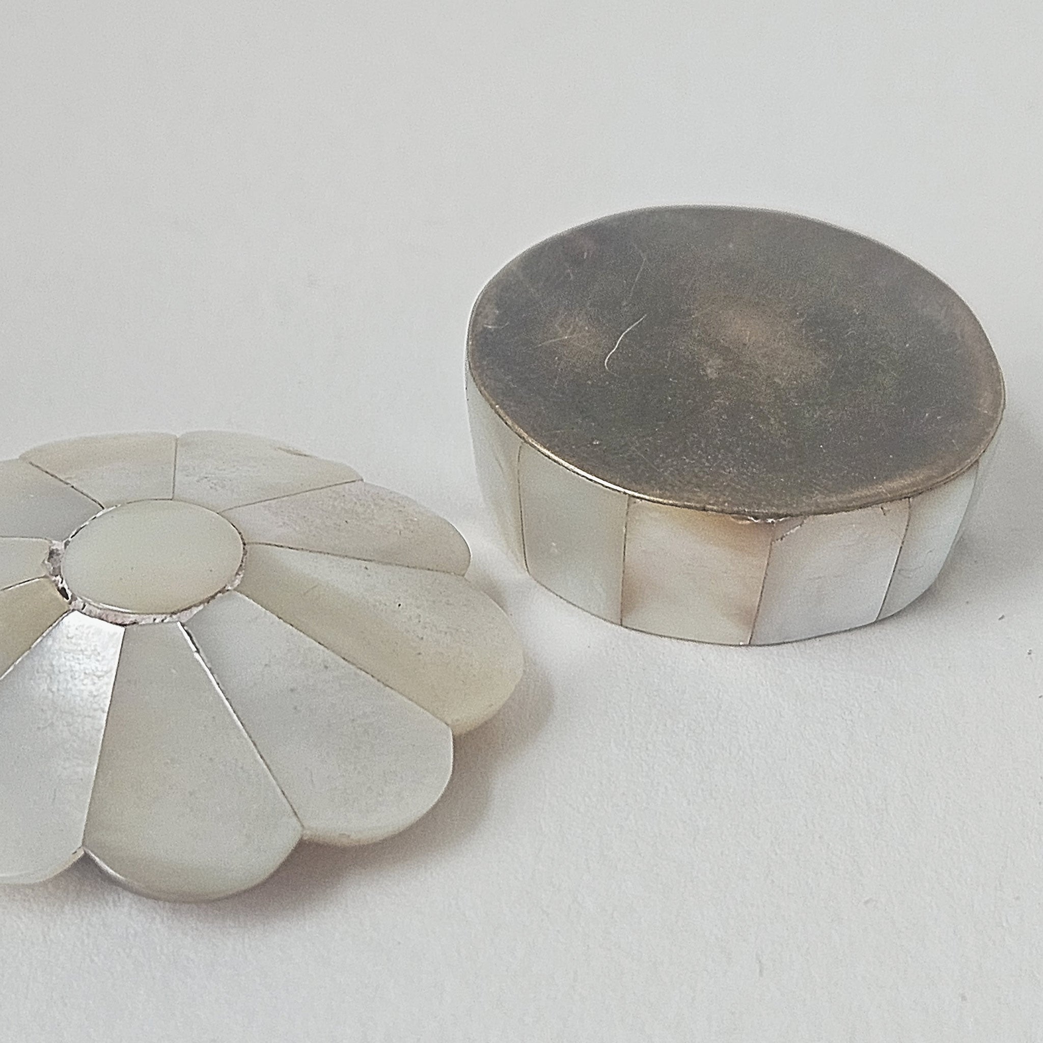 Flower shaped Mother of Pearl pill box.
