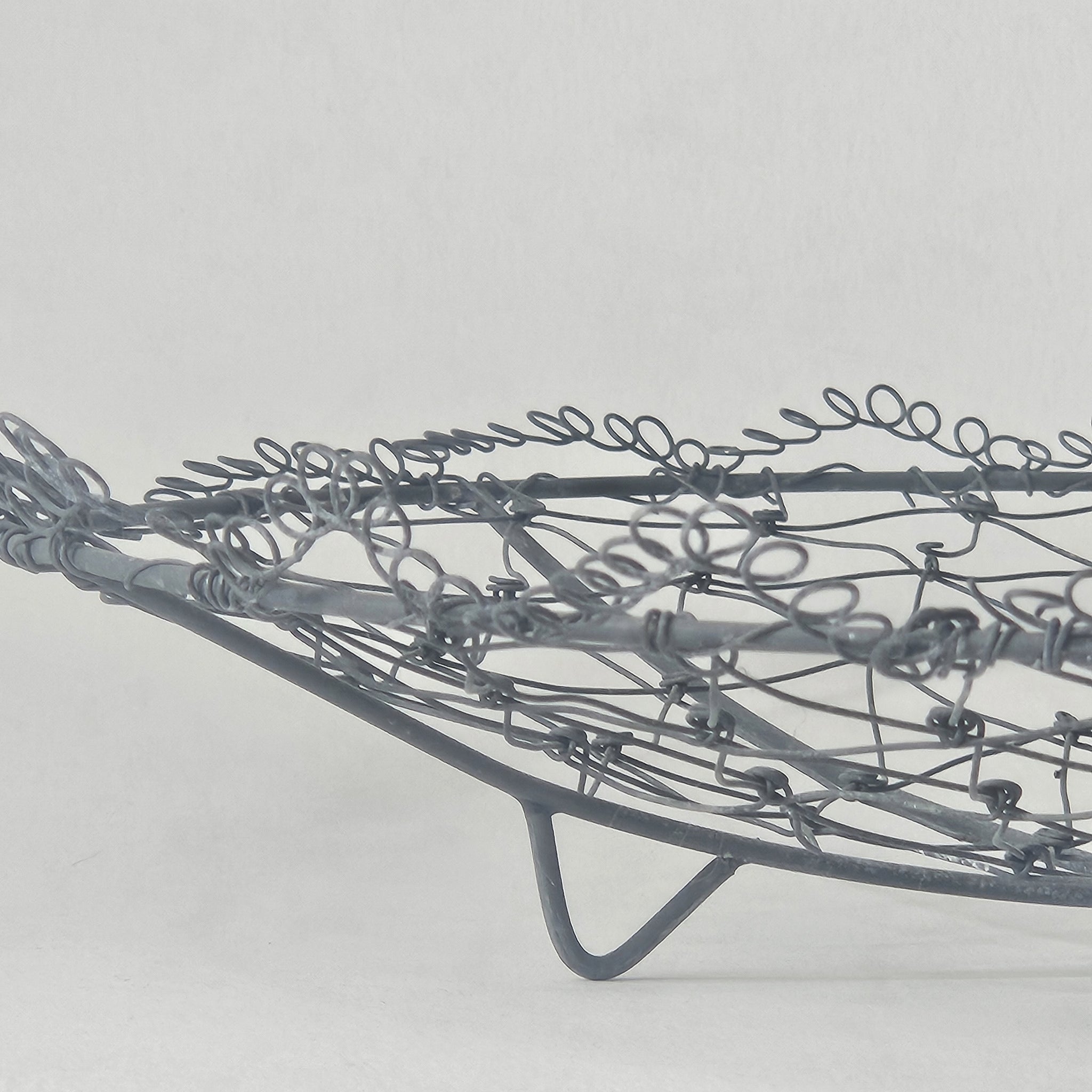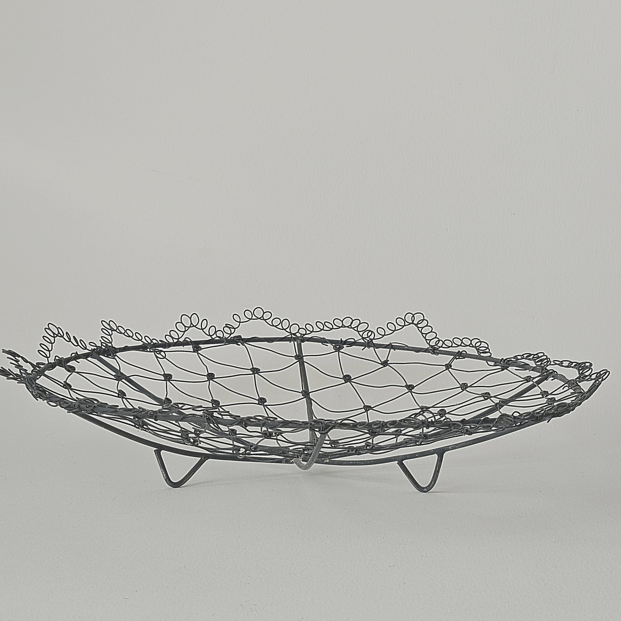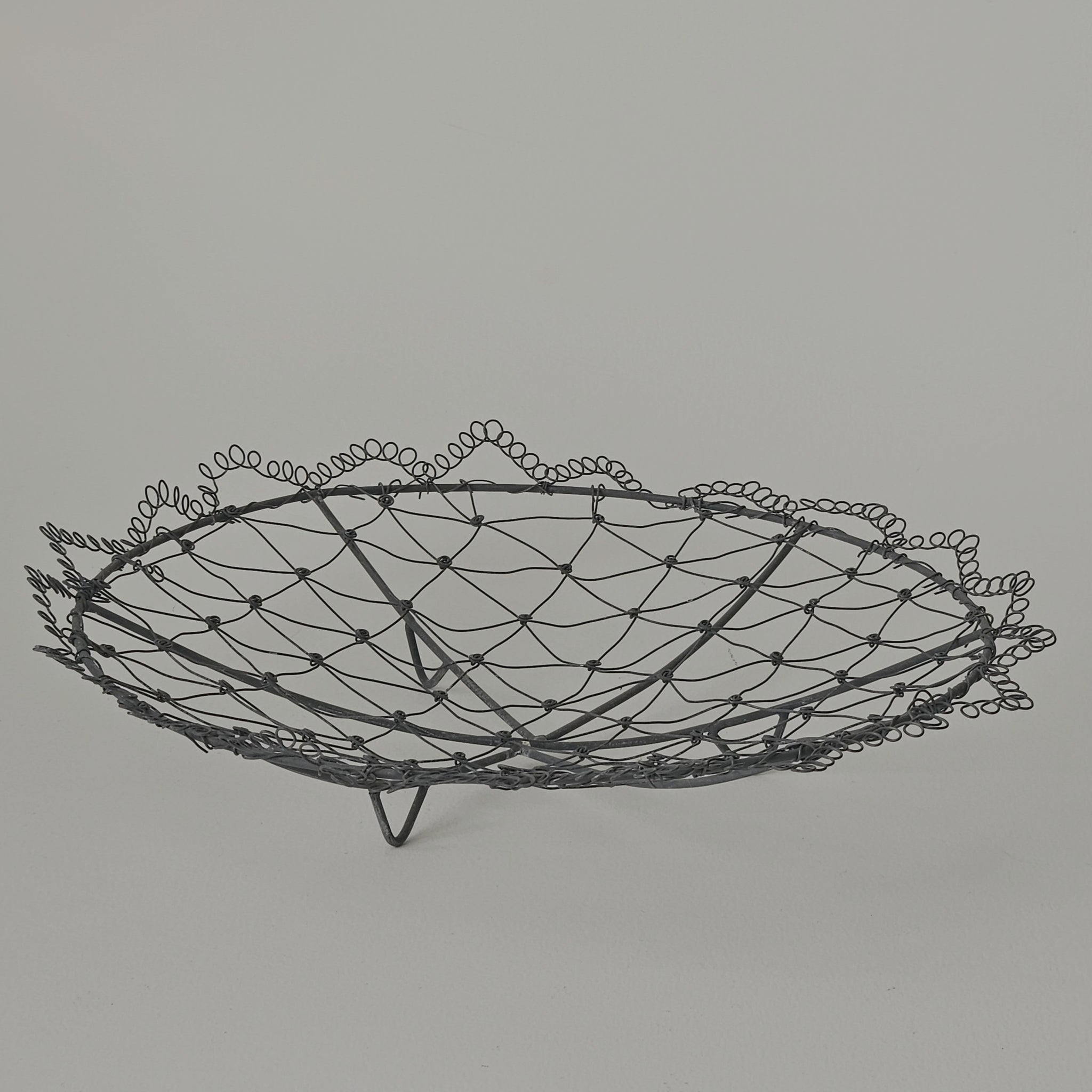 Scandinavian tramp art style metal bowl with decoratuve edge. Light weight, stands on 3 feet. A beautiful fruit basket.