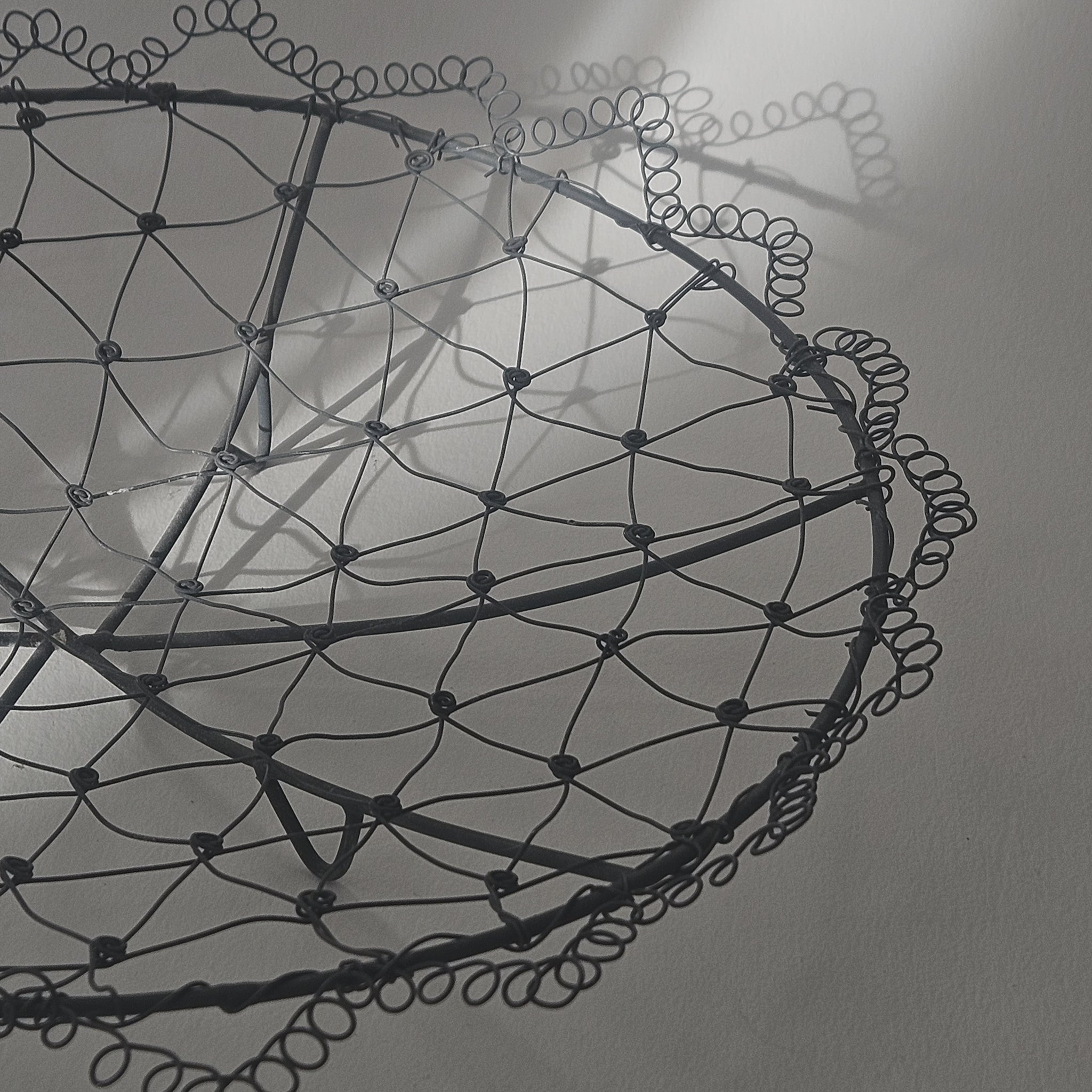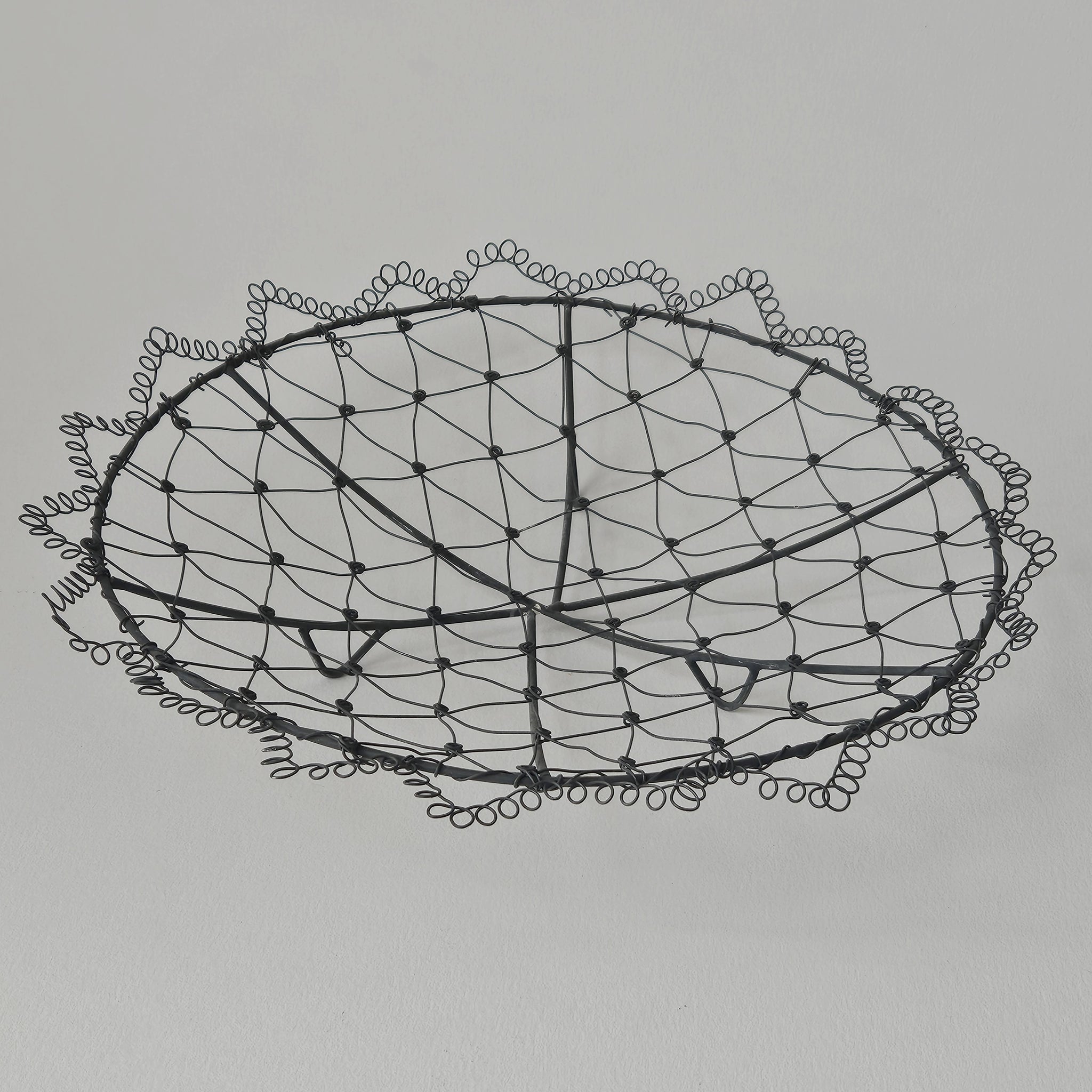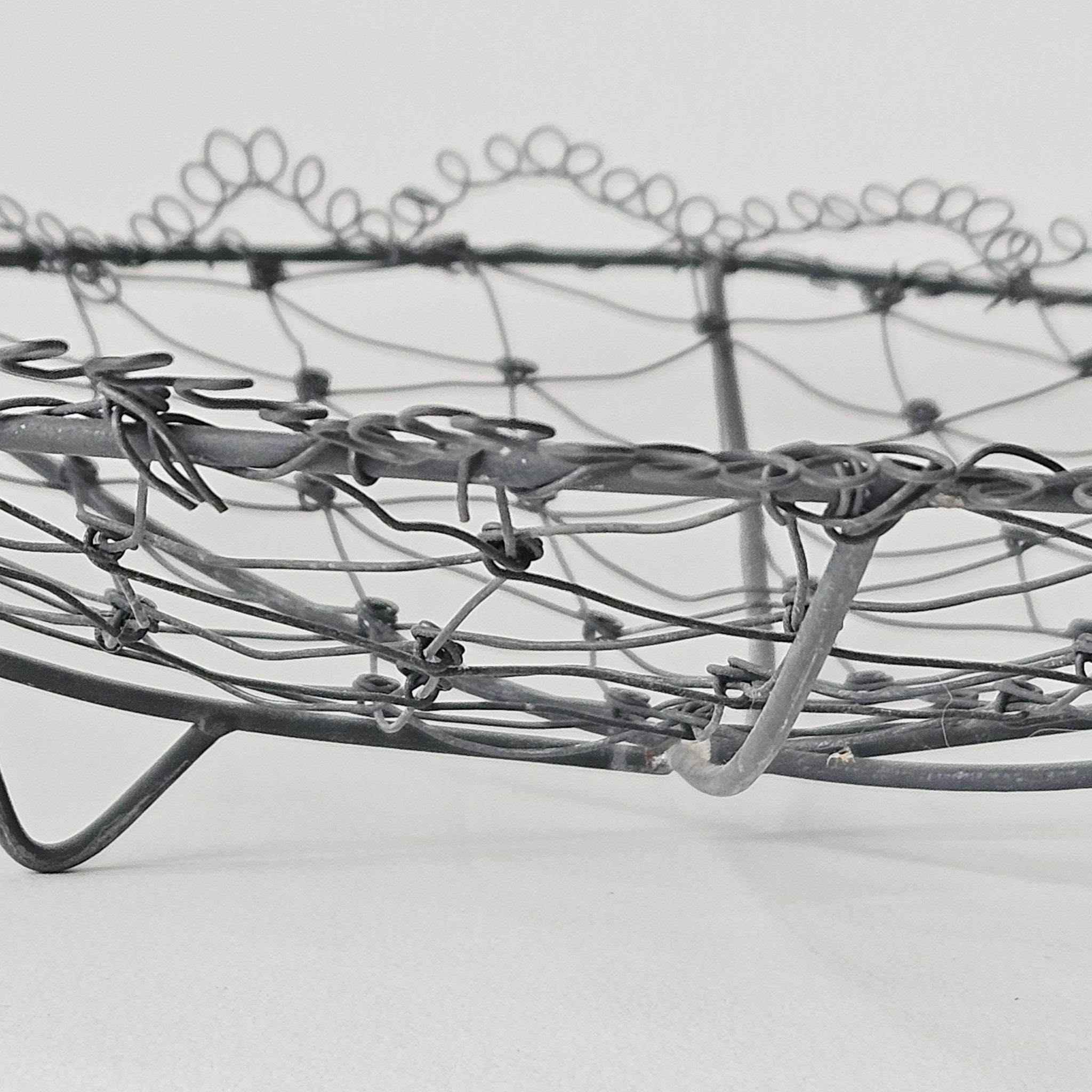 Scandinavian tramp art style metal bowl with decoratuve edge. Light weight, stands on 3 feet. A beautiful fruit basket.